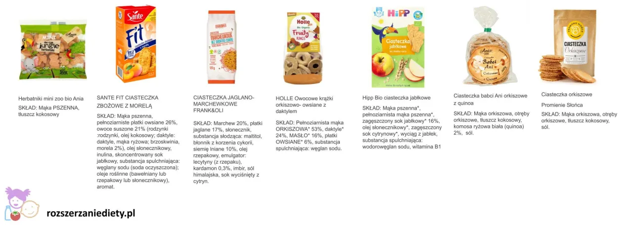 | Ryżowe wafelki | Delikatne, łatwe do przeżucia, idealne dla niemowląt. |
